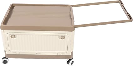 2. Портативный благодаря колесикам: Ящик для хранения оснащен колесиками для удобной транспортировки между комнатами. Ручка органично интегрирована с крышкой, когда ящик не используется, что позволяет легко выдвинуть его и начать использовать.