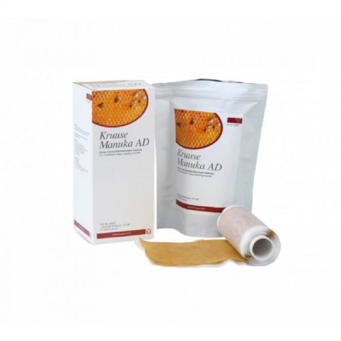 Manuka AD от Kruuse представляет собой стерильную абсорбирующую повязку, пропитанную медом манука.