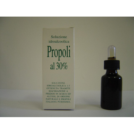 Водно-спиртовой раствор прополиса 1:3, полученный методом холодной мацерации в воде и спирте натурального происхождения и прополиса итальянского производства.
