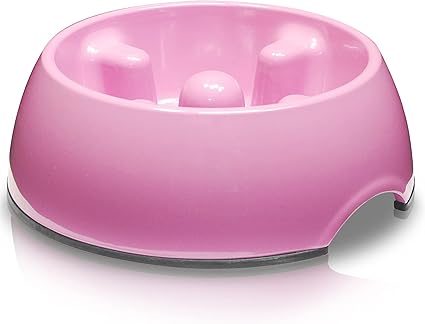 Ее можно использовать как миску для воды или еды. Она имеет нескользящую поверхность для защиты во время активного кормления. Внутри миски есть резиновые накладки для предотвращения скольжения. Доступна в розовом цвете, вместимостью 140 мл.