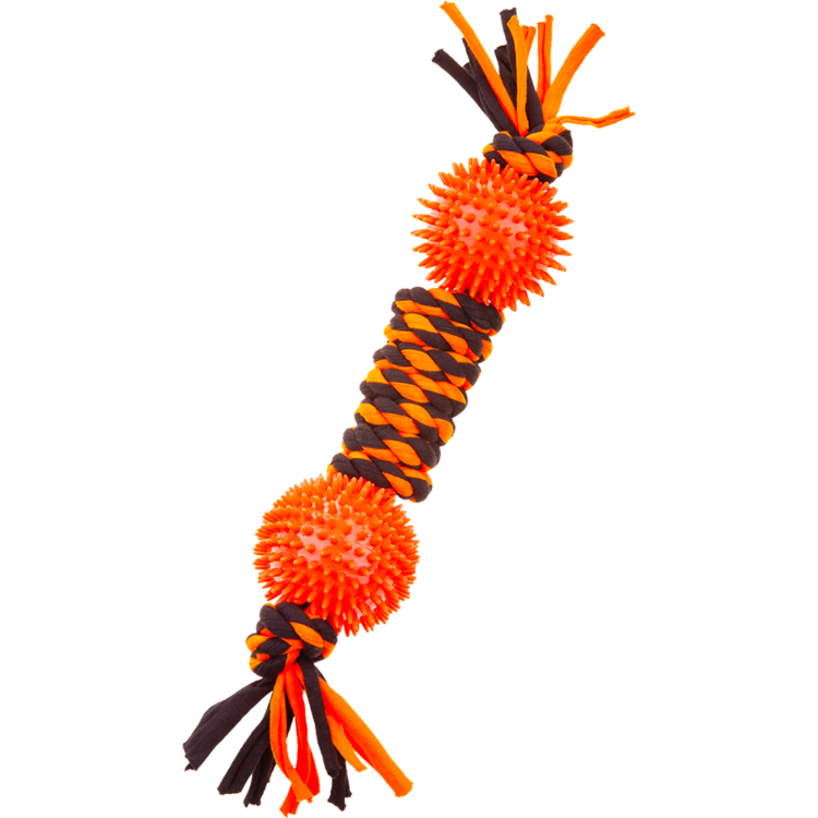 Doozy перетягивание мяча и мяча — это яркая игрушка-верёвка с отличной видимостью. Высокое качество и долговечность подарят вашей собаке массу радости! Толстая оранжево-чёрная верёвка с шипованными шариками на обоих концах позволит вам активно проводить время с вашим питомцем и заботиться о гигиене его зубов. Игрушка идеально подходит для перетягивания, жевания и апортировки. Яркий цвет обеспечивает отличную видимость в любых условиях. Изготовлена из прочного и безопасного материала. Преимущества: • отличная прочность