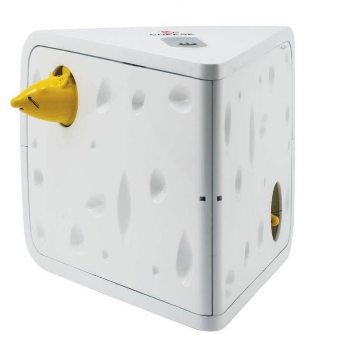 Игрушка Frolicat Cheese от Pet Safe — это игрушка-головоломка для кошек с двумя мышами, которые появляются и исчезают с каждой стороны кусочка сыра.