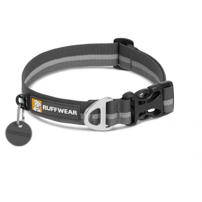 Серый воротник Ruffwear Crag Collar идеально подходит для любой прогулки. Прочный ошейник с алюминиевой застежкой, которая позволяет очень быстро и легко надевать и снимать ошейник.