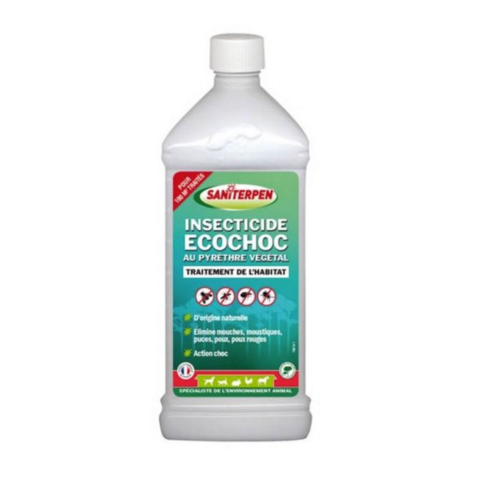 САНИТЕРПЕН Инсектицид ЭКОЧОК – это концентрированный инсектицид шокового действия, уничтожающий мух, комаров, блох, вшей, красных вшей из мест обитания и среды обитания животных (будки, домики, курятники,…). Его действие немедленно!
