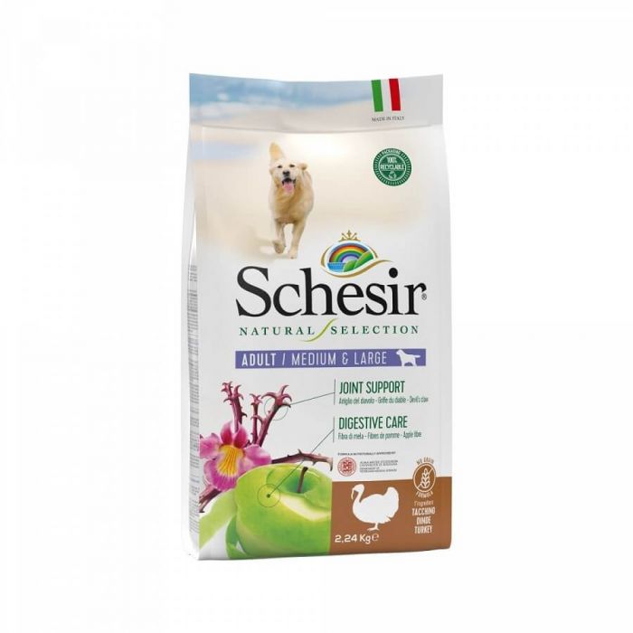 Для вашей средней или крупной взрослой собаки предложите вкусный рецепт с крокетами из индейки от Schesir. Состав этих крокетов богат полезными свойствами и помогает поддерживать суставы вашего любимого животного.