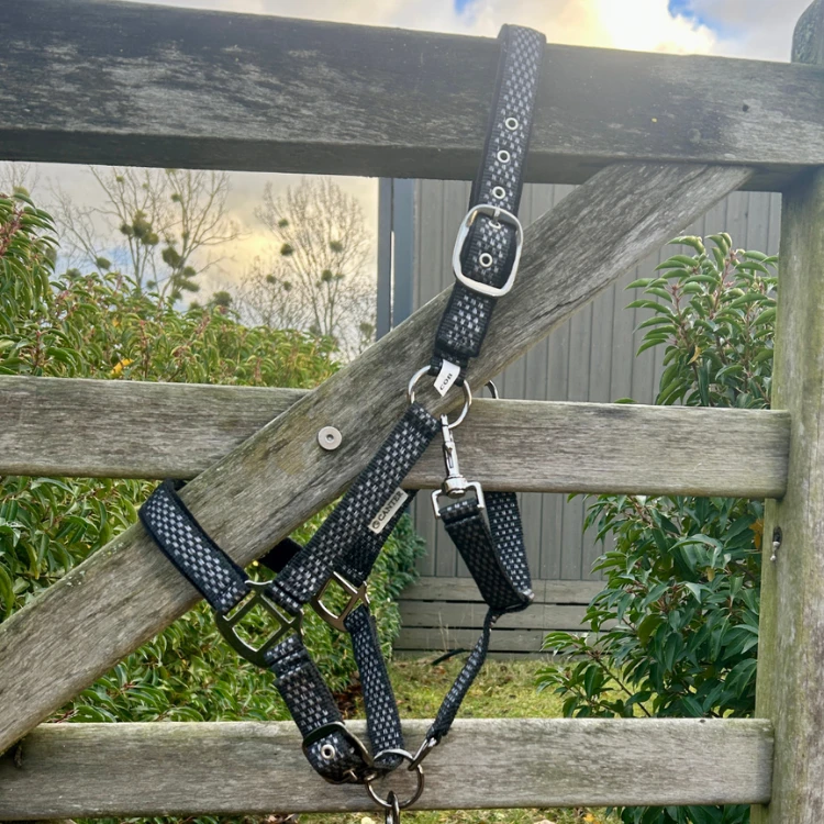 Очень красивый недоуздок от Canter, двухцветный, с контрастным люрексом.