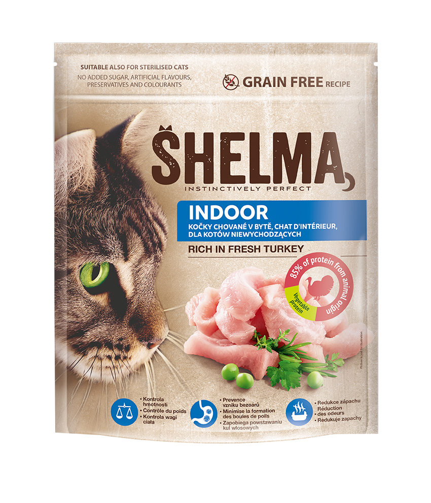 Shelma For indoor cats rich in fresh turkey 750g