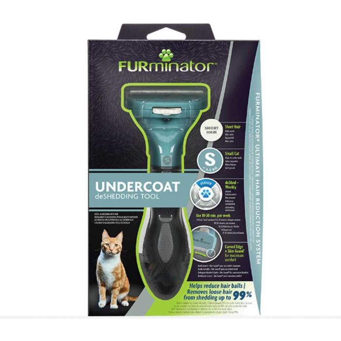 Щетка Furminator — это инструмент против линьки для маленьких кошек (до 4,5 кг) с короткой шерстью, эта щетка уменьшает выпадение шерсти до 99%.