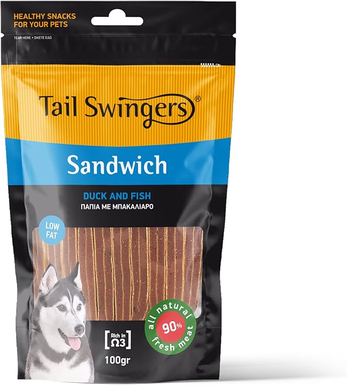 Описание продукта: РЫБНЫЕ И УТИНЫЕ ЛАКОМСТВА TAILSWINGERS С ДВОЙНЫМ БЕЛКОМ, БЕЗ КУРИЦЫ, ИДЕАЛЬНО ПОДХОДЯТ В КАЧЕСТВЕ НАГРАДЫ ДЛЯ ВАШЕГО ЧЕТВЕРОНОГА. СПЕЦИАЛЬНО РАЗРАБОТАНЫ ДЛЯ ЛЮДЕЙ С АЛЛЕРГИЕЙ НА РАЗЛИЧНЫЕ ВИДЫ МЯСА ИЛИ ЗЛАКОВ, НА 100% НЕ СОДЕРЖАТ ЗЛАКОВ И ГЛЮТЕНА. КУПИТЕ 4 ЛАКОМСТВА ПО 100 ГРАММОВ ПО ВЫГОДНОЙ ЦЕНЕ. Состав: 52,3% утки, 37,5% трески.