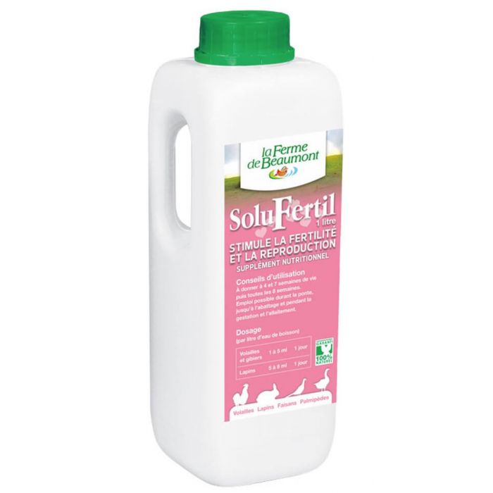 Солуфертил — это раствор, разработанный для стимуляции сперматогенеза и воспроизводства у кур, уток и гусей, фазанов, голубей, кроликов или других домашних птиц.