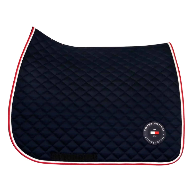 Хорошо прилегающий, сохраняющий форму коврик для выездки с классическим эффектом небольшой стежки, окантованный лентой TH Global типичных цветов Tommy.