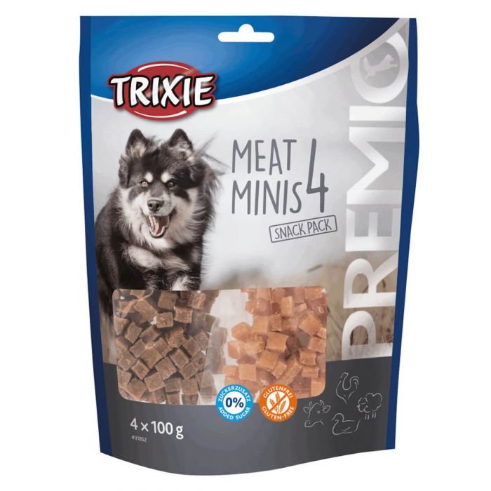 Premio 4 Meat Minis от Trixie — это ассортимент лакомств с четырьмя вкусами (курица, говядина, утка, баранина), которые порадуют вашу собаку! Без добавления сахара и без глютена.