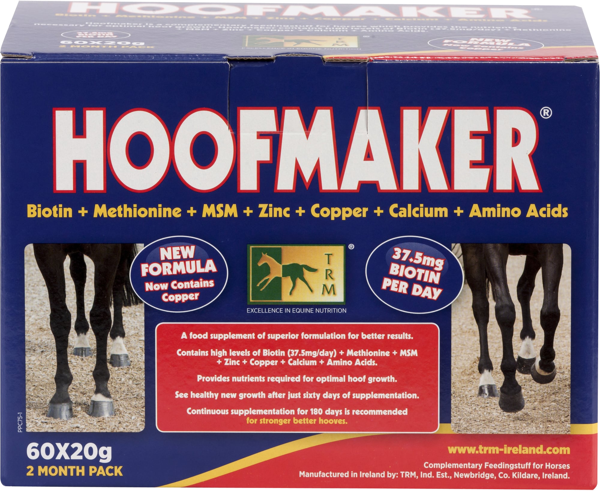 Hoofmaker содержит богатую серой аминокислоту метионин и богатое серой питательное вещество метилсульфонилметан. Каждый 20-граммовый пакетик HOOFMAKER содержит большое количество биотина (37,5 мг).