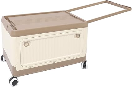 2. Портативный благодаря колесикам: Ящик для хранения оснащен колесиками для удобной транспортировки между комнатами. Ручка органично интегрирована с крышкой, когда ящик не используется, что позволяет легко выдвинуть его и начать использовать.