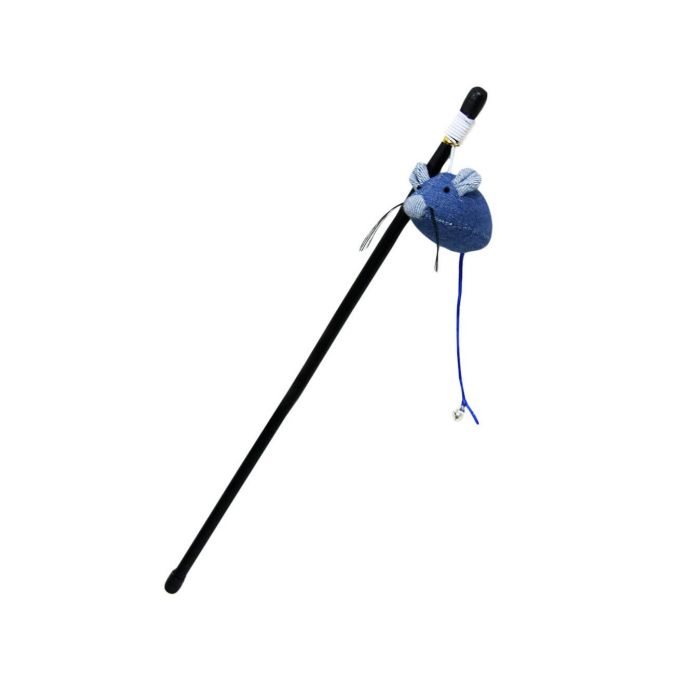 Игрушка-удочка с джинсовой мышкой от Bubimex — это игрушка для кошек с колокольчиком, который пробуждает у вашей кошки охотничий инстинкт.
