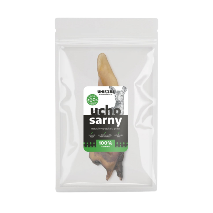 Вкусное и полезное лакомство для вашей собаки. Оно удовлетворяет одну из самых важных потребностей собаки – кусать и жевать. Оно надолго занимает её внимание. 100% натуральное. Ухо косули – отличный источник коллагена, который полезен для суставов, шерсти и когтей. Ваша собака будет выглядеть и чувствовать себя превосходно, поедая это восхитительное лакомство. Оленина отлично подходит для собак с аллергией. Также подходит для собак с пищевой непереносимостью и избыточным весом. Преимущества: не содержит зерна, красителей и консервантов, усиливает укус, снимает стресс, идеально подходит для собак с аллергией. Всегда кормите этим лакомством под присмотром, рассматривая его как пищевую добавку. Упаковка: 1 шт.