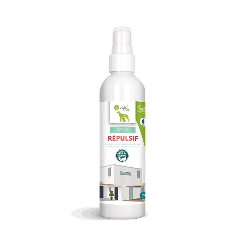 ОписаниеРепеллентный спрей Up Véto Bio — это спрей с органическими эфирными маслами с отталкивающими обонятельными свойствами для собак и кошек. Помогает защитить места и предметы (мебель, ткани) от их воздействия (когтей, укусов), распространяя приятный запах в доме. Способ применения Не наносите продукт на животное перед использованием. Распылите непосредственно на участок или предмет, который хотите защитить, из расчета одно нажатие на 200 см2 на расстоянии примерно 20 см.СоставБиоцидные вещества: гераниол* (0,5 г/л) корпус № 106-24-1, лаванда гибридная. масло* (0,5 г/л) корпус № 91722-69-9.