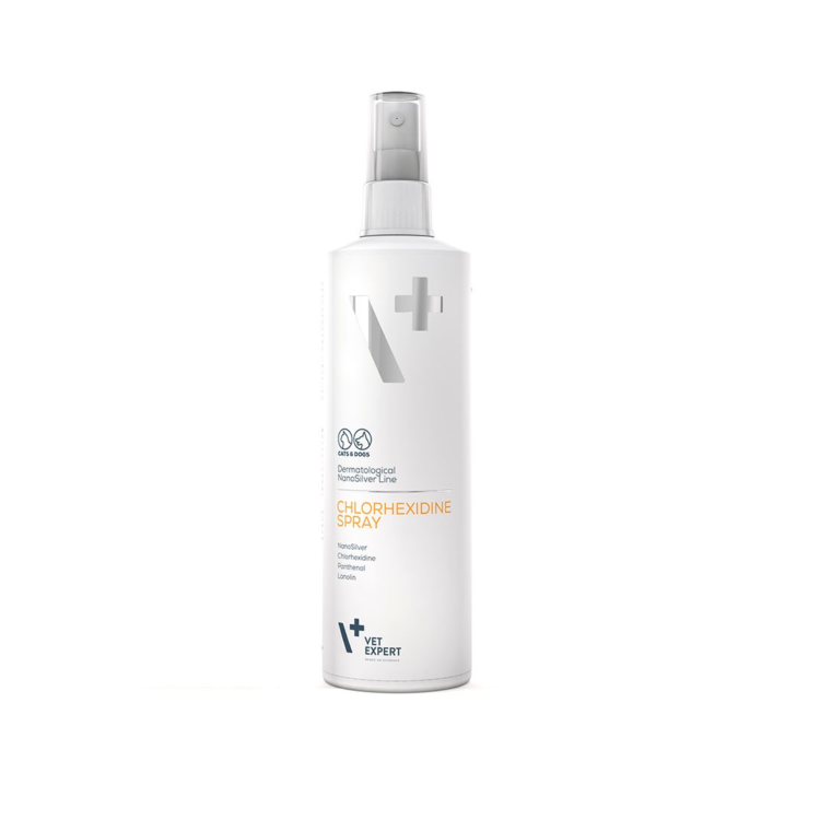 Средство для местного применения для собак и кошек, способствующее лечению бактериальных поражений кожи. Улучшает состояние кожи, увлажняя её и уменьшая раздражение. Благодаря содержанию хлоргексидина и наносеребра, средство способствует регенерации и заживлению ран, снимает раздражение и снимает воспаление. Наносеребро обладает сильными антибактериальными и дезинфицирующими свойствами, ускоряет заживление повреждённых тканей и обладает регенерирующими свойствами. Хлоргексидин обладает сильными бактерицидными и бактериостатическими свойствами, помогая успокоить раздражение кожи. Ланолин успокаивает раздражение, а пантенол способствует заживлению ран. Экстракт цветков ромашки оказывает успокаивающее и противовоспалительное действие, снимает зуд и способствует заживлению раздражений. Объём: 100 мл.