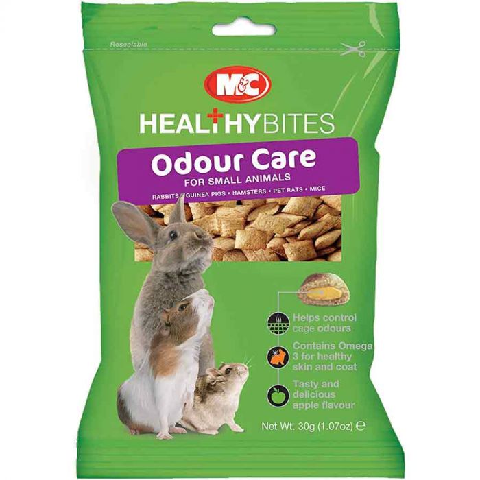 Healty Bites Odour-Care от Vetiq — это лакомство для грызунов, состоящее из вкусной хрустящей оболочки хлопьев с кремом со вкусом яблока. Это лакомство помогает контролировать запахи в клетке.