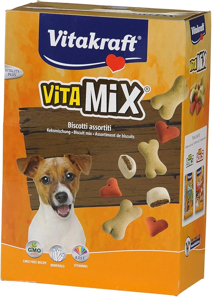 Описание: Микс из 3 хрустящих и вкусных печений. Они содержат витамины и минеральные соли и идеально подходят в качестве полезного и весёлого угощения или для утоления голода в течение дня. Печенье выпекается и упаковывается в пакет, сохраняющий свежесть, чтобы надолго сохранить хрусткость и насыщенный аромат. VitaMix 300 г Инструкции по приготовлению Ингредиенты Состав:, Злаки (80%, из которых цельнозерновая мука 17%), Мясо и производные (мясная смесь 3%), Сахара, Масла и жиры, Субпродукты растительного происхождения, Минералы, Овощи, Фрукты, Состав:, Злаки, Мясо и производные (4,5% говядина, 4,5% свинина, 4% птица), Субпродукты растительного происхождения, Масла и жиры, Минералы, Сахара, Рыба и производные, Состав:, Злаки (цельнозерновая мука 17%), Сахара, Масла и жиры, Субпродукты растительного происхождения, Минералы, Овощи, Фрукты Смотреть больше
