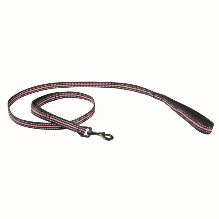 Поводок для собак из нейлоновой ткани со светоотражающей проволокой имеет две ручки с неопреновой подкладкой.