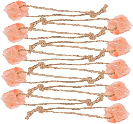 10pcs Natural Pink Mineral Salt Lick Blocks with Rope, Animal Chew Toys for Horses, Cattle, Deer and Small Pets, 30-50g Each, Livestock for Digestion and Electrolyte Support