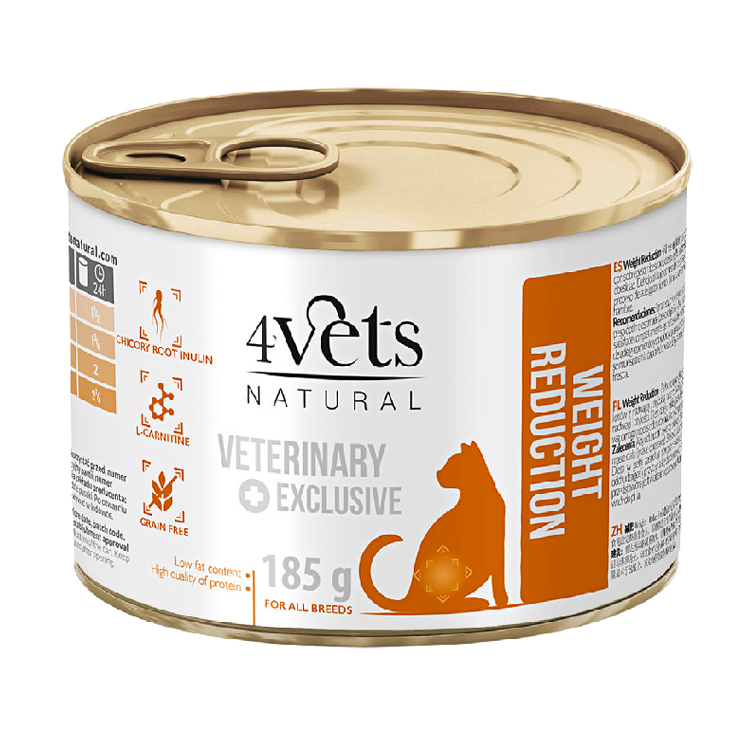 4Vets NATURAL – СНИЖЕНИЕ ВЕСА НОВЫЙ КОШЕК 185 г для кошек с ожирением, избыточным весом или диабетом, а также после стерилизации