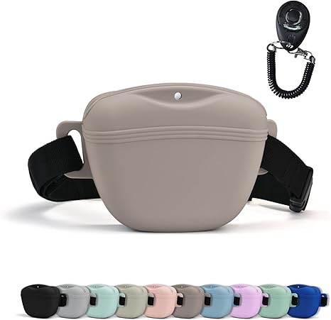Плотный силиконовый материал: сумка для тренировочных лакомств изготовлена из пищевого силикона, безопасного и безвредного. Она может содержать сухую или влажную пищу и легко моется. Эта сумка для закусок была улучшена по толщине и твердости, поэтому она не легко сминается при сжатии, а также удобна для взятия еды. Большая вместимость: по сравнению с тяжелыми сумками для закусок, наша сумка для закусок легче и портативнее, с большей шириной, чтобы вмещать больше еды и не допускать ее окончания, когда вы выгуливаете собаку. Легкая и большая вместимость (13 x 10,5 x 5 см) может вместить 1,68 стакана сухого или влажного корма. Плотное закрытие: два встроенных магнита на застежке упаковки для закусок обеспечивают плотное прилегание закрытия, так что ею можно легко управлять одной рукой для быстрого доступа к еде. Силиконовая подкладка с обеих сторон уплотнения делает отверстие более плотным, что может эффективно предотвратить выпадение еды, когда вы выгуливаете собаку, приседаете и других действиях. Портативный поясной ремень: обхват талии 80–126 см обеспечивает комфортную посадку для любого пользователя. Его можно носить как на талии, так и по диагонали. Вы можете гулять с питомцем на свежем воздухе, не беспокоясь о том, что пакет с лакомствами спадёт. Кликер для дрессировки: в комплекте профессиональный кликер для дрессировки животных. Нажмите кнопку посередине, и он издаст звук погремушки. Можно дрессировать не только собак, но и кошек, кур и лошадей. Дрессировка с помощью погремушки поможет собаке стать увереннее в себе.