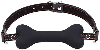 Bavaglio A Palla Bondage Per Animali Domestici Osso Morso In Pelle (Nero)