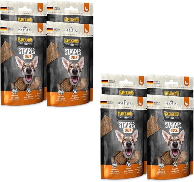 Belcando Stripes Duck | Упаковка из 8 штук | 8 x 70 г | Лакомства для собак | С суперфудами: пивными дрожжами, крилем и травами | Без зерна и сахара | С большим количеством мяса
