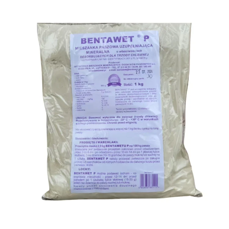Bentawet P – это кормовая добавка для свиней с минеральным рассасывающим действием. Этот продукт особенно рекомендуется для защиты поросят в период отъема и при технологических метастазах. Bentawet P следует давать, в частности, после приобретения поросят и отъемышей у разных производителей для дальнейшего откорма в течение первых 14 дней. Преимущества: В качестве дополнения к антибиотикотерапии. Можно применять с первых недель жизни. Поддерживает и активизирует иммунную систему. Предотвращает обезвоживание. Упаковка: 1 кг.