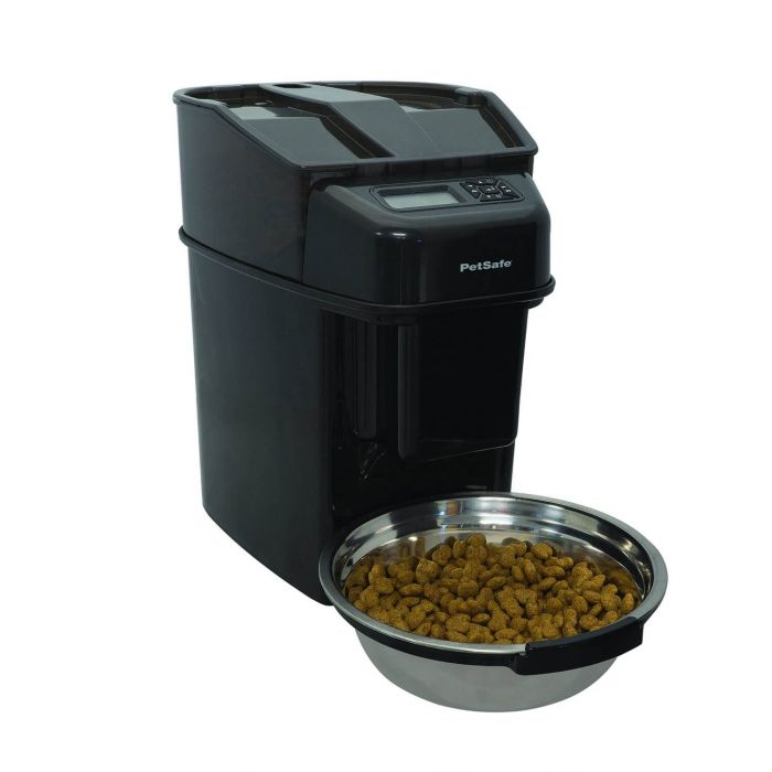 Цифровая кормушка Pet Safe — это автоматическая цифровая кормушка для домашних животных. Вы можете запрограммировать до 12 приемов пищи в день с указанием времени и количества, чтобы следить за рационом вашей собаки или кошки и, таким образом, избегать излишеств.