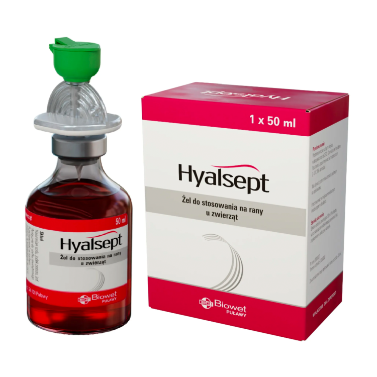 Гель для применения при ранах у всех видов животных. Гиалсепт способствует заживлению ран, создавая барьер на поверхности раны, который изолирует рану от внешней среды и поддерживает необходимый уровень влажности внутри раны. Гелевая формула обеспечивает максимальную адгезию, позволяя активным ингредиентам прилегать к ране, увлажняя ее, создавая благоприятные условия для заживления и одновременно предотвращая прилипание повязки. Гиалуронат натрия способствует заживлению ран и регенерации тканей. Йод и йодид калия обладают дезинфицирующими свойствами. После вскрытия упаковки содержимое следует использовать в течение 28 дней. Объём: 50 мл.