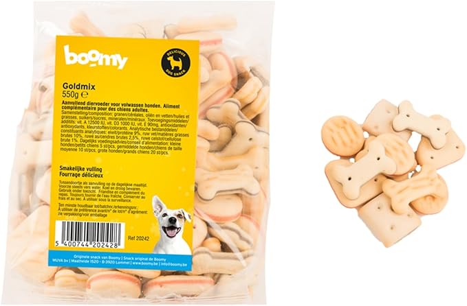 Описание продукта: Boomy Gold Mix – это вкусное и питательное лакомство для вашей собаки. Его хрустящая текстура способствует очищению зубов и поддержанию здоровой гигиены полости рта. Добавление необходимых витаминов поддерживает общее здоровье вашей собаки. Удобная упаковка позволяет всегда иметь лакомство под рукой – будь то дрессировка, игра или просто угощение. Состав: злаки, масла и жиры, сахара, минералы. Способ применения: всегда обеспечивайте питомца свежей питьевой водой. Подробнее