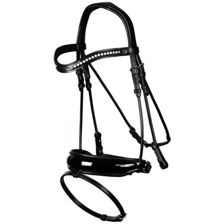 Эта великолепная выездковая уздечка отличается V-образным налобником, украшенным кристаллами Свароски.
