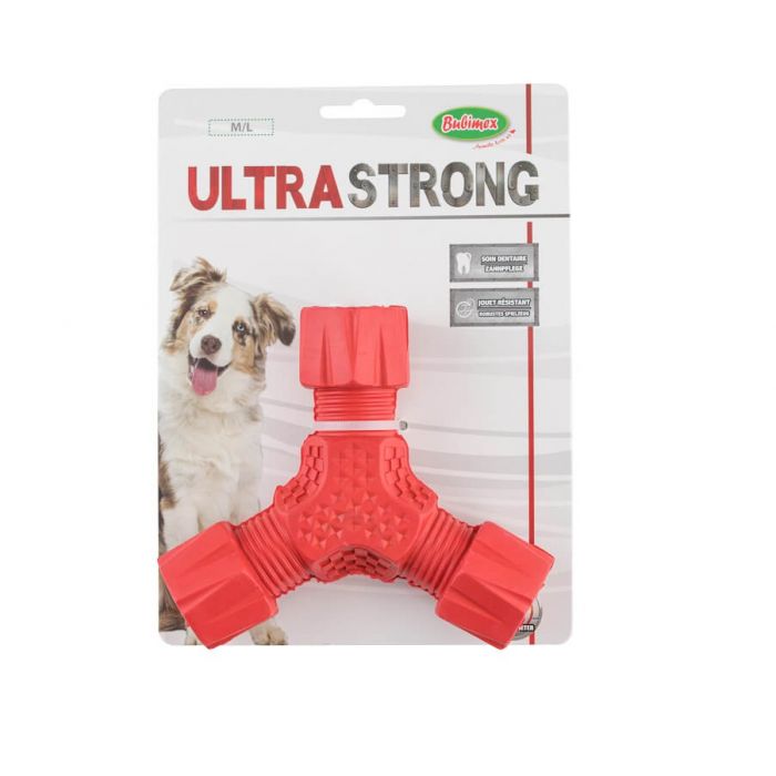Bubimex Ultra Strong T-Toy — это сверхпрочная игрушка, изготовленная из натурального каучука, чтобы сопротивляться агрессивным собакам и удовлетворять их естественную потребность в жевании.
