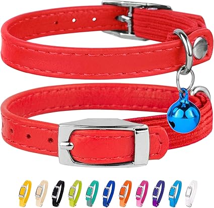 Размеры изделия: общая длина 21,5 см, ширина 1 см, вес 9 грамм; подходит для окружности шеи 15,5–17,75 см. Материал и дизайн: кошачий ошейник ручной работы из мягкой натуральной кожи с эластичной застежкой. Безопасность: эластичная лента для легкого расстегивания в случае зацепа; в комплект входит цветной металлический колокольчик для определения местоположения. ВЫСОКОКАЧЕСТВЕННЫЙ МАТЕРИАЛ: Изготовлен из высококачественной кожи, обеспечивающей долговечность и комфорт; подходит для чувствительной кожи кошек. Применение: подходит для использования внутри и снаружи помещений; подходит для кошек мелких пород на всех этапах жизни › Подробнее о продукте