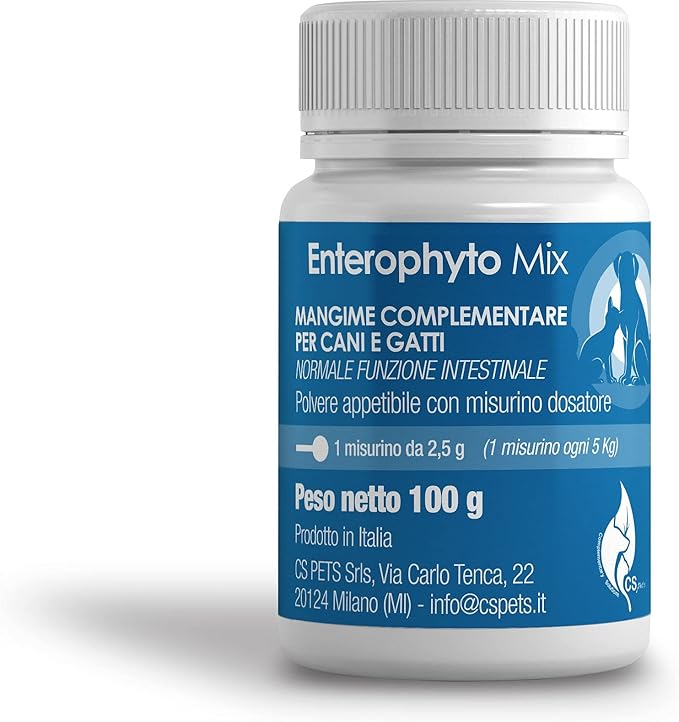 Enterophyto Mix — это дополнительный корм, разработанный для поддержания здоровья желудочно-кишечного тракта вашей собаки. Он мягко, но эффективно борется с диареей, дисбактериозом, метеоризмом и запором благодаря синергии натуральных волокон и слизи. Сочетание баобаба, рожкового дерева и подорожника регулирует перистальтику, уменьшает раздражение и способствует поддержанию баланса кишечника. Идеально подходит при мальабсорбции, энтерите или пищевой непереносимости, восстанавливая естественный ритм организма. Благодаря МОС и ФОС, Enterophyto Mix помогает восстановить баланс кишечной микробиоты вашей собаки, способствуя росту полезных бактерий. Экстракт семян грейпфрута дополняет эффект, помогая противодействовать избыточной патогенной флоре и очищать пищеварительный тракт. В формате порошка 100 г его можно легко разбавить водой или смешать с кормом. Он очень вкусный, хорошо переносится даже самыми чувствительными собаками. Не содержит красителей, консервантов, филлосиликатов и лактозы. Enterophyto Mix обеспечивает комплексную и натуральную поддержку, как при острых приступах, так и при ежедневном лечении, даже при длительном лечении. Ваш незаменимый помощник в поддержании спокойствия, регулярности и здоровья вашей собаки. › Подробнее о продукте