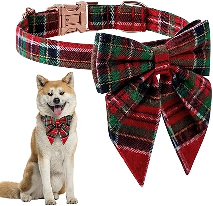 Dog Bow Tie, Plaid Bowknot Collar, Pet Bow Tie, Adjustable Dog Collar, Classic Plaid Bowknot Dog Bow Tie Cute Adjustable Holiday Dog Collars with Bowtie for Puppy and Cat