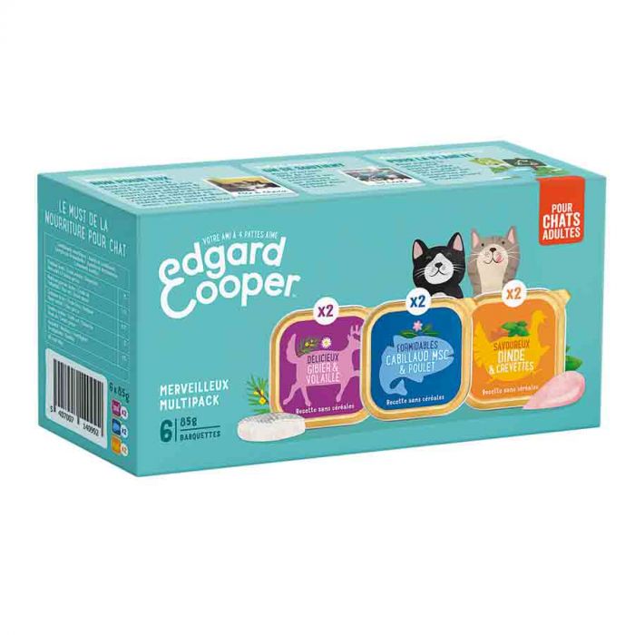 Мультипак Edgard & Cooper позволит вам предложить кошке широкий выбор лотков: для трески, дичи или индейки, чтобы разнообразить вкусы и сделать ее счастливой!