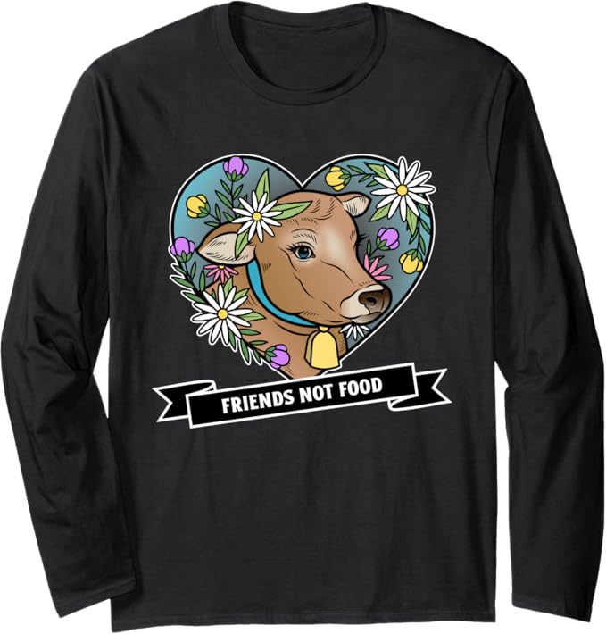Футболка с длинным рукавом «Друзья, а не еда» с принтом милых животных для веганов