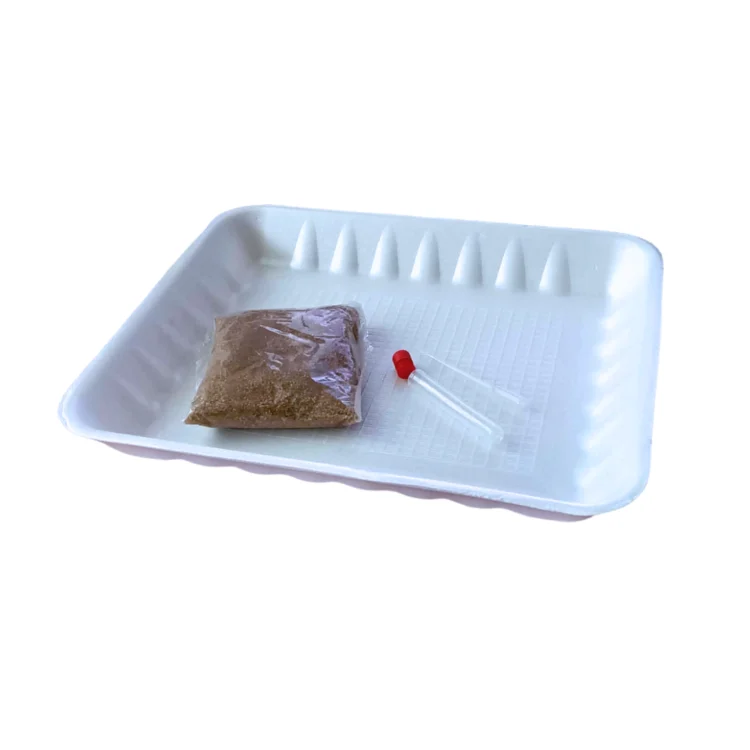 Гидрофобный наполнитель для сбора мочи. В комплект входят лоток, пипетка и пробирка. Структура наполнителя обеспечивает сохранение мочи на поверхности в виде капель, что позволяет легко собрать её в пробирку с помощью пластиковой пипетки. По структуре наполнитель похож на бентонитовый наполнитель.