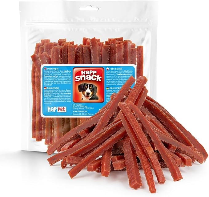 Натуральные лакомства для собак в виде мягких утиных полосок: полезное лакомство для собак в качестве награды за дрессировку, прорезывателя зубов и вкусного дополнения к ежедневному рациону вашего питомца. Утиные полоски — это легкоусвояемые лакомства для собак, богатые животным белком, поддерживающие мышцы и энергию, и идеально подходящие для собак крупных, средних и мелких пород. Эти мягкие полоски можно давать целиком или нарезать на кусочки. Они являются идеальной наградой во время дрессировки, прогулки или игры. Утиные полоски удовлетворяют естественную потребность жевать и кусать: полезный прорезыватель зубов, который снижает стресс, скуку и улучшает ежедневную гигиену полости рта вашей собаки. Эти вкусные утиные лакомства для собак имеют особый аромат, который любят собаки: они идеально подходят в качестве награды после прогулки, тренировки или отдыха. Утиные полоски — это полезное лакомство с низким содержанием жира, подходящее даже для собак, склонных к избыточному весу и с чувствительной пищеварительной системой. Упаковки по 70 г, 100 г и 500 г — удобное решение, позволяющее подобрать размер корма в соответствии с потребностями вашего питомца и хозяина. Состав: Утка 80%, Сорбит 5%, Глицерин 7%, Крахмал 3%, Растительный белок 5%. › Подробнее о товаре