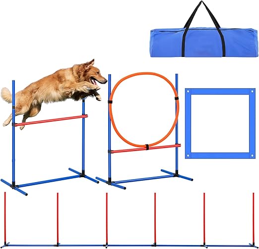Улучшите ловкость вашей собаки: в наш комплект входит выдвижное кольцо для прыжков шириной 27,95 дюйма и диаметром от 23,62 до 25,9 дюйма, 6 тканевых стоек для крепления на земле и площадка для отдыха. Идеально подходит для улучшения ловкости и послушания вашей собаки, а также для поощрения веселых и интерактивных тренировок. Премиум и прочный: стойки изготовлены из прочного ПВХ, прочные и устойчивые, устойчивые к деформации во время использования. Кольцо для прыжков оснащено усиленными стойками и 3-точечной системой крепления на липучке, чтобы свести к минимуму шатание. Легкий и простой в установке: установка без инструментов с помощью быстроразъемных соединений и зажимов позволяет легко собрать и разобрать его за считанные минуты. Регулируемая высота стоек для прыжков и кольца, легкая конструкция и сумка для хранения позволяют легко транспортировать и использовать как в помещении, так и на улице. Быстрая установка и легкая портативность: наслаждайтесь простой сборкой благодаря нашему удобному дизайну и храните или перевозите свое оборудование для аджилити в прилагаемой сумке для переноски с ручками для легкой мобильности в парке или других местах. Разнообразные варианты упражнений: в комплект входят плетёные жерди, бокс для отдыха, туннели, лазы и регулируемые трамплины, что делает его подходящим для собак любого размера и уровня подготовки. Создавайте различные программы упражнений, чтобы ваш питомец каждый день получал заряд энергии и сил.