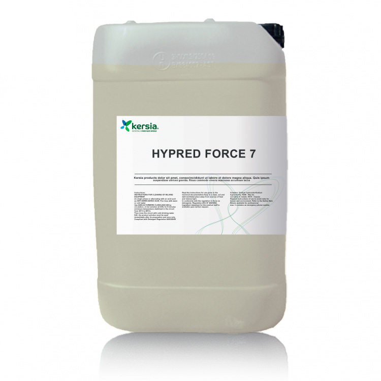 Hypred Force 7 — известное дезинфицирующее средство компании Kersia. Продукт протестирован Национальным ветеринарным институтом и Национальным научно-исследовательским институтом для борьбы с вирусом африканской чумы свиней (АЧС) и птичьим гриппом. Он также борется со многими другими инфекционными заболеваниями, эффективно уничтожая все вирусы, бактерии и грибки. Для дезинфекции оборудования и помещений для разведения животных. Для использования в ветеринарии и агропищевой промышленности. Концентрированное средство для профессионального применения. Эффективен в следующих концентрациях: бактерицидное действие при концентрации 0,4%; вируцидное действие при концентрации 1%; фунгицидное действие при концентрации 2%. Наибольшая эффективность при pH, близком к 7,5. Биоцидный продукт.