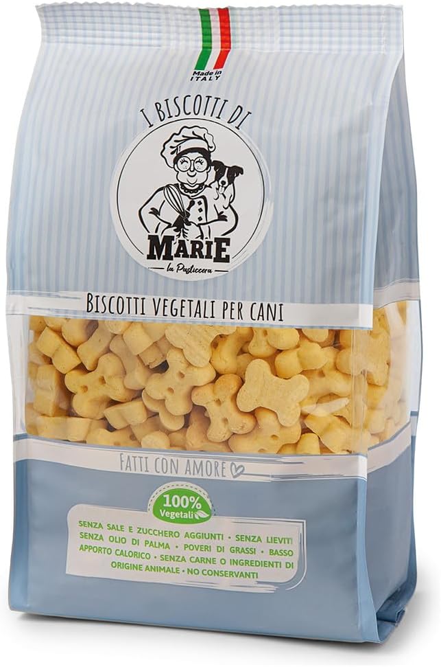 Описание продукта: Biscotti di Marie — это восхитительные лакомства для собак на растительной основе, тщательно изготовленные в Италии. Эти восхитительные печенья в форме косточек изготовлены из 100% высококачественных растительных ингредиентов, разработанных для благополучия вашего четвероногого друга. Специальная формула полностью натуральна, без соли, добавленного сахара, дрожжей и пальмового масла. Они не содержат ингредиентов животного происхождения и консервантов, что делает их здоровым выбором для собак всех возрастов и размеров. Хрустящая текстура помогает поддерживать хорошую гигиену полости рта, уменьшая образование зубного камня и борясь с неприятным запахом изо рта. Каждая упаковка весом 400 г упакована с любовью и заботой в соответствии со строгими стандартами качества. Забавная форма и идеальный размер делают эти печенья идеальными как для щенков, так и для взрослых собак, предлагая вкусное и полезное лакомство во время дрессировки или просто в качестве перекуса. Инструкция по применению: для маленьких собак. Ингредиенты: 100% органические ингредиенты; 100% ингредиенты, пригодные для человека; 100% растительные ингредиенты. Инструкция по применению: следуйте инструкциям на упаковке. Подробнее