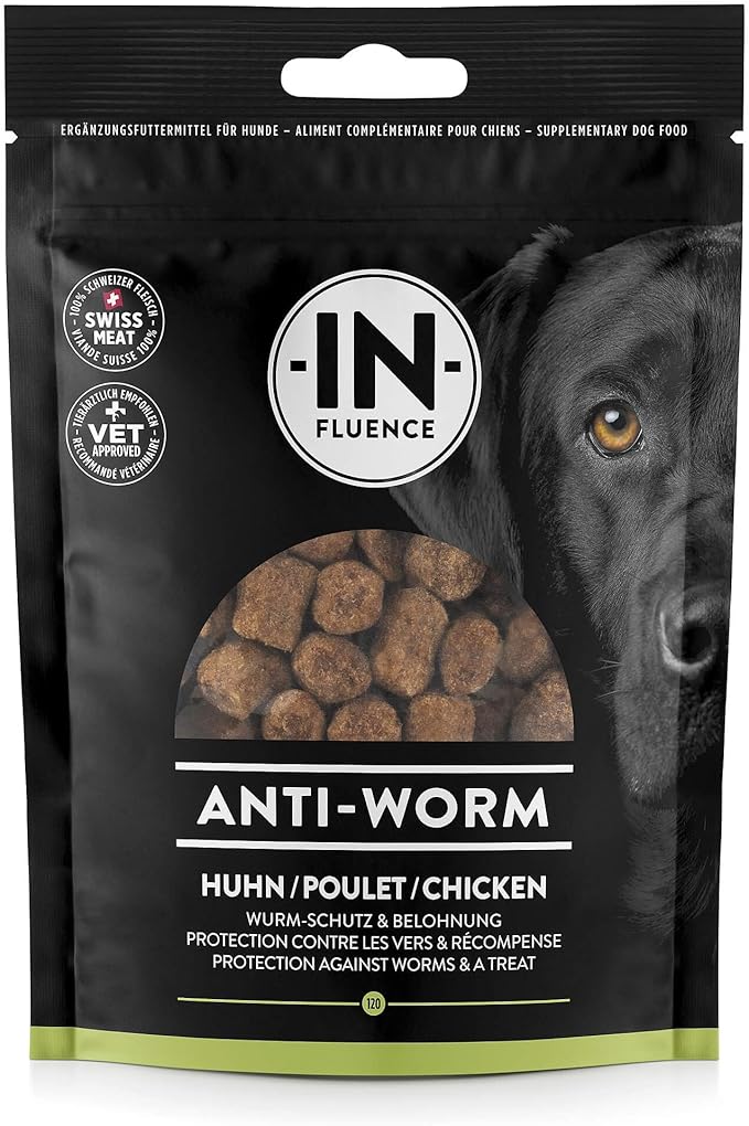 IN-Fluence Anti-Worm Spuntino per cani, carne svizzera, protezione e ricompensa, Vet-Approved, 100 g