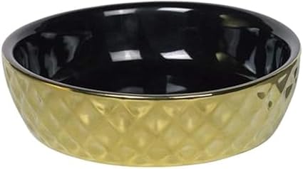 Описание товара: Эта элегантная керамическая миска для кошек «Золотого» цвета идеально дополнит любой современный интерьер. Внутренняя часть черная, а внешняя — золотистая. Из-за золотистого цвета миску нельзя мыть в посудомоечной машине или использовать в микроволновой печи. Содержимое упаковки: Керамическая миска «Золотого» цвета, Ø 14,0 x 4 см, 0,25 л