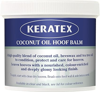 Высококачественная смесь кокосового масла, пчелиного воска и масла чайного дерева. Придает копытам питание, обогащает цвет и придает глубокий блеск. Разработан как полезный бальзам для копыт, который кондиционирует, защищает и ухаживает за копытами лошадей круглый год.