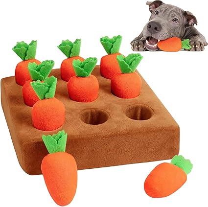 Описание товара: Высококачественная, мягкая и безопасная для питомцев: Эта игрушка-морковка изготовлена из высококачественного кристаллического хлопка и наполнена мягким плюшем. Она очень мягкая, гибкая и бережно воздействует на лапы и десны вашего питомца. Идеально подходит для жевания, сжимания и игривого перетягивания, обеспечивает комфорт при регулярном использовании, гарантируя вам полную безопасность вашего питомца во время игры. Нескользящее основание и прочная конструкция: Благодаря нескользящему основанию коврик-морковка надежно держится на полу во время активных игр, позволяя вашему питомцу сосредоточиться на игре, не опасаясь, что игрушка будет скользить. Аккуратная, точная прошивка без торчащих ниток обеспечивает долговечность и делает игрушку надежным развлечением для повседневного использования. Игрушка для развития интеллекта и обучения обонянию: Спрячьте любимые лакомства вашего питомца в отверстиях в морковке, чтобы активизировать его естественные инстинкты обоняния и поиска пищи! Эта умная игрушка для дрессировки помогает улучшить интеллект и навыки обнаружения запахов вашей собаки, поддерживает ее любознательность и предотвращает деструктивное поведение, вызванное скукой, превращая безделье в полезную умственную тренировку. Идеальное развлечение для игр в одиночестве: когда вы вдали от дома, эта плюшевая игрушка в виде морковки развлекает вашего питомца, снимает стресс и скуку, что делает ее отличным компаньоном для игр в одиночестве. Важное примечание: эта игрушка не пищит и не подходит для крупных собак, которые любят сильно грызть, что обеспечивает безопасную и подходящую игру для вашего пушистого члена семьи. Интерактивная игра в поиск моркови для питомцев: наша плюшевая игрушка-сад моркови превращает время приема пищи и игры в веселье. Просто позвольте вашему питомцу вытащить 12 мягких морковок из коврика или спрятать лакомства в отверстия в морковках для увлекательного поиска. Идеально подходит для улучшения взаимодействия между вами и вашей маленькой/средней собакой, старой собакой или любопытным котенком, укрепляя вашу особую связь с каждой игрой › Подробнее о товаре
